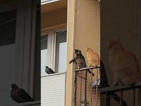 What an effort to catch the pigion from another varanda #funnycats #cats...